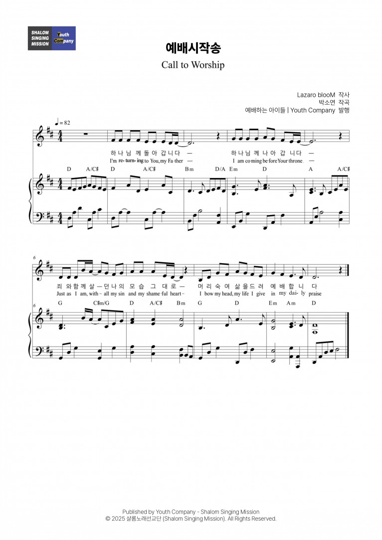 [악보] 예배시작송 (Call to worship) - 예배하는 아이들 (예배하는 아이들 Vol. 1 - 예배)
