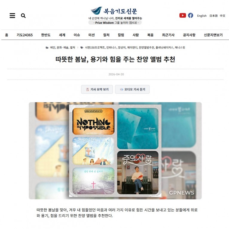 [기획기사] 따뜻한 봄날, 용기와 힘을 주는 찬양 앨범 추천(복음기도신문)